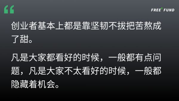 无论今年消费赛道如何变化,对创业者来说,有句老话不会变:创业者基本上都是靠坚韧不拔把苦熬成了甜。凡是大家都看好的时候,一般都有点问题,凡是大家不太看好的时候,一般都隐藏着机会。