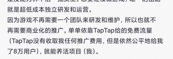 心动公司旗下的游戏社区TapTap,对标的是PC平台上steam。凭借宽松友好的环境,帮助TapTap吸引了不少中小型游戏独立开发团队与游戏制作人。有个人游戏制作者在《开发者的话》中感谢TapTap给予的免费流量。