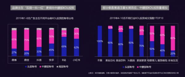 其中提到,广告主投放KOL正在快速“下沉”。尤其是“双微一抖一红”平台,平均60%的投放是投给了中腰部账号。