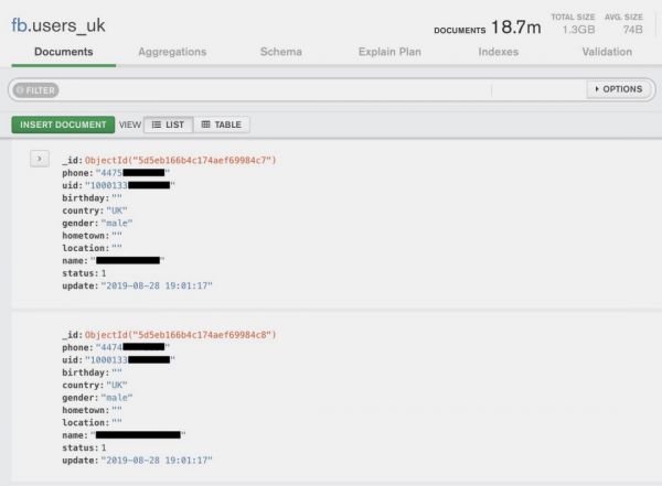 数据内容包括他们的电话号码,Facebook ID,全名,位置,生日,个人简历,部分人群的数据还包括电子邮件地址。