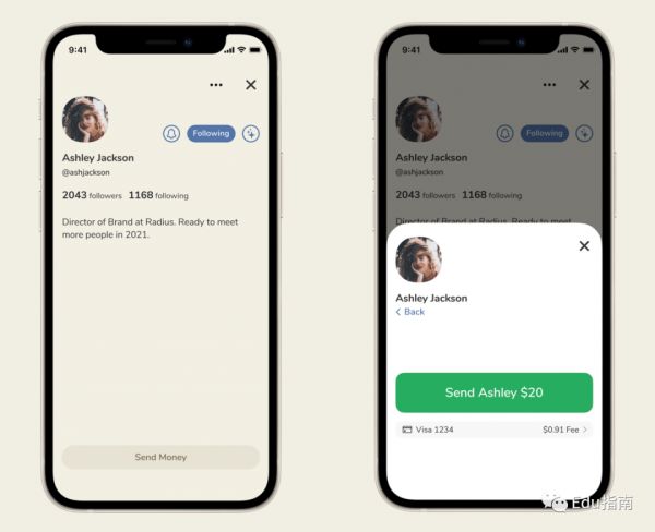 Clubhouse Payments的运作方式如下:用户可以前往想要捐款的创作者个人资料,在Clubhouse中进行付款。如果创建者启用了该功能,则用户将可以点击“汇款”并输入金额。这就像一个虚拟的钱罐,或者是Clubhouse品牌的Venmo版本(一款小额支付的软件;但暂不支持打款后私聊等功能)。
