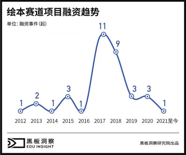 2012年,绘本市场拿到第一笔融资。由于最初绘本行业极其依赖线下,所以在线教育元年热潮,并没有加速其快速成长。直到2017年,绘本行业才迎来了属于自己的第一个融资高峰,也是迄今为止,最火热的一年。从融资角度看,只专注做绘本生意的企业吸金能力较弱,好似仅在资本市场中昙花一现。