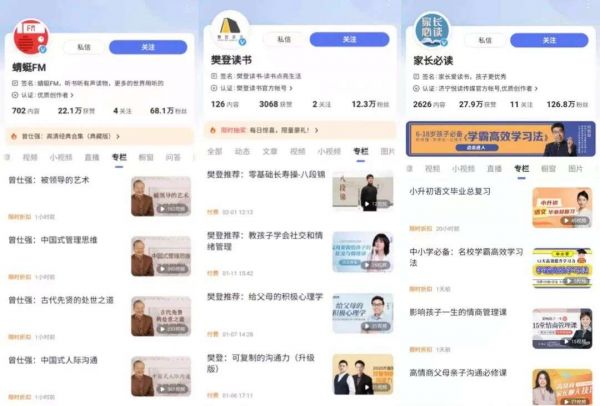 蜻蜓FM、知乎、樊登读书等机构先后入驻百度,借助百度的付费专栏这一工具,成为百度付费业务的代表账号;家长必读、1岗E学、南方健康等各不同领域的企业也开始在百度进行内容输出。