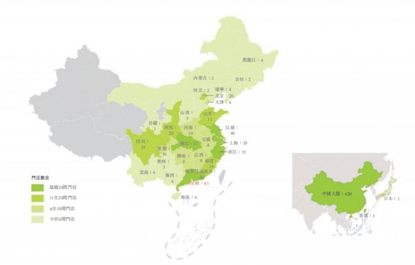 招股书显示,截至2020年9月30日,在奈雪的茶420家大陆门店中,南方地区门店总数量达333家,占总门店数量的79.29%,北方省份门店数量普遍少于6家。