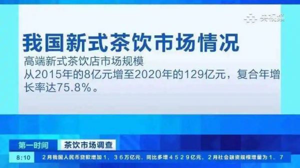 我国高端新式茶饮店市场规模从2015年的8亿元增至2020年的129亿元,复合年增长率达75.8%。