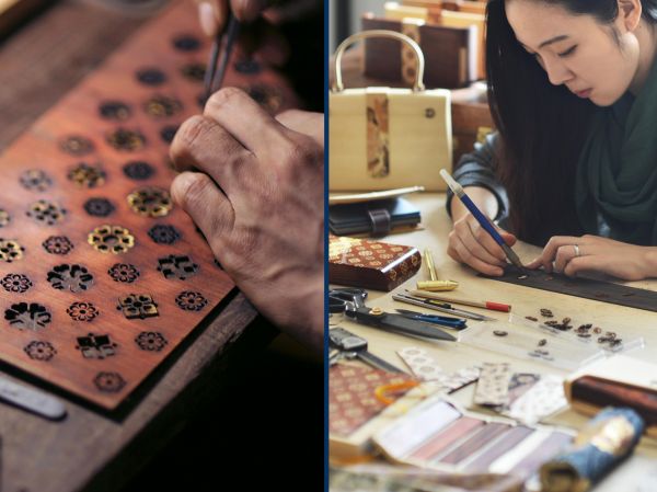 创始人祁天表示,端木良锦在材料和工艺分别做了突破,以获得相对自由的创作空间。在材料端,拓展了经深层染色固色的木质饰面材料,以突破制包使用的色彩单调的稳定木材。这类特制材料此前只在顶级家居内装、豪车内饰等行业使用,首次出现在时尚配饰中。在工艺端上,品牌重现并优化了细木镶嵌工艺,以承载花纹和图案表达,诸如:逐鹿纹、洛神赋、敦煌壁画、花钿纹等,将中高古的中国元素呈现于方寸之间。