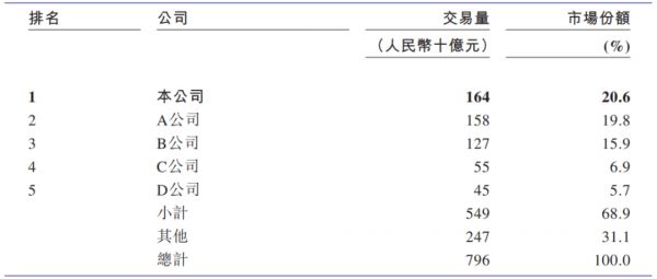 略微出乎人们意料的是,在第三方供应链金融科技解决方案战场中,市占第一(按交易量计算)的是腾讯参股约18%的联易融科技(HK:09959)。阿里的蚂蚁金与京东的京东科技(原京东数科)只能敬陪其后,分列二三。