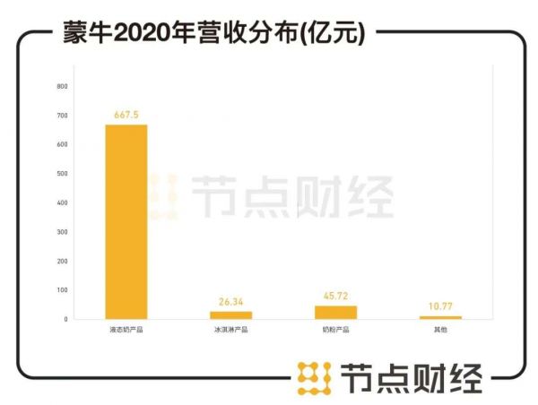 从营收结构来看,蒙牛液态奶产品年内实现收入677.51亿元,占当期总收入的89.11%;冰淇淋实现26.34亿元,占总收入的比重为3.46%;奶粉实现45.73亿元营收,占总收入的比重6.01%,其他部分实现收入10.77亿元,占总收入的1.42%。