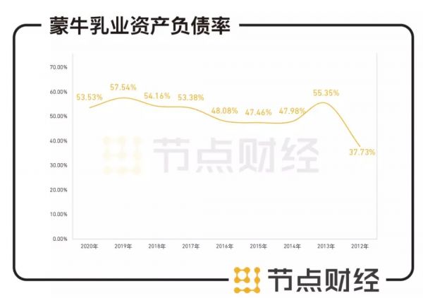 蒙牛的资产负债率,从上市之后的40%左右增加到2020上半年的60%,虽然2020全年的资产负债率有所回调,但是蒙牛手中仍有两项悬而未决的收购案(澳洲第二大乳企LLD和妙可蓝多),2021年注定还是要花钱。