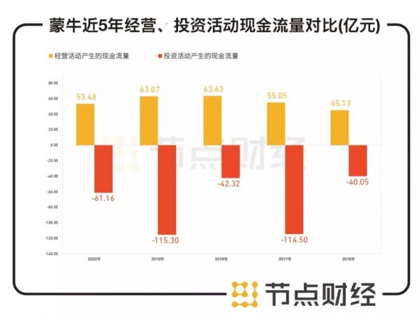 此外,对比蒙牛的现金流量,可以发现其投资性现金流近年来多为净流出,用于构建固定资产以及购买企业,其经营性现金所得远不能支持其投资支出,“自我造血”或许已经出现问题。