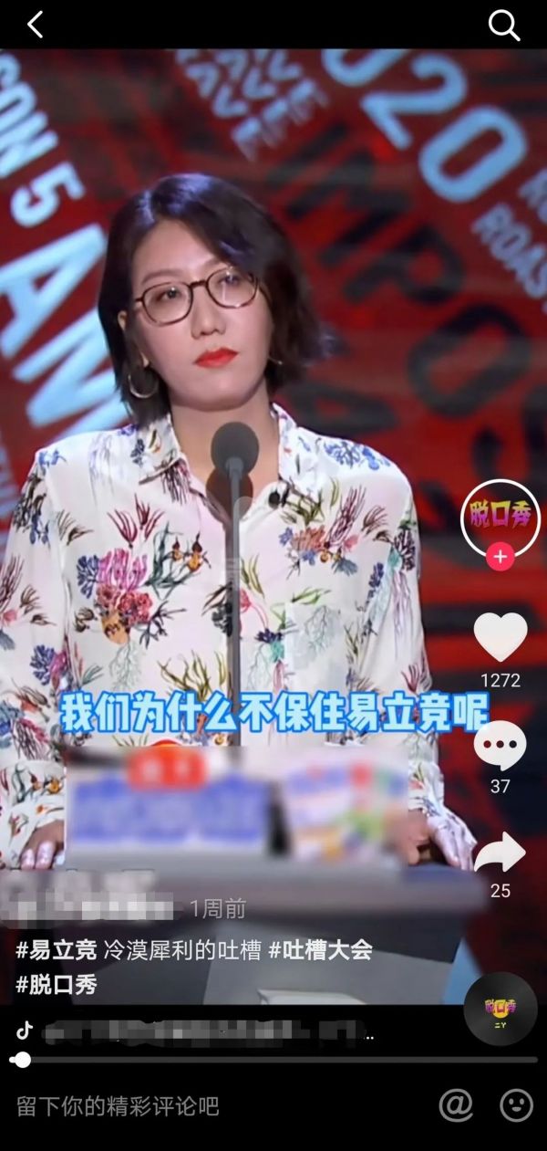 虽然单个脱口秀演员或辩手发言的精彩片段,能够以短视频形式广泛传播,但对于辩手性格、关系的刻画也增加了节目效果——这都是单一的短视频段落难以概括的部分。毒眸往期文章《杀疯了的易立竞,不得不变的<吐槽大会>》中就提到,《吐槽大会5》中积分制的对抗赛制,是为了激发嘉宾之间的关系,让“吐槽陌生人”在这个场景中变得合理。