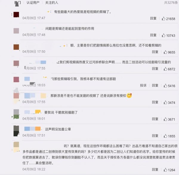 “版权保护是好的,但是这种杜绝二创杜绝自来水的模式感觉把版权保护走偏了,保护的已经不再是创作者的权益,而是资本方的利益”,微博上有网友评论道。