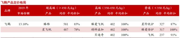 单从2019年飞鹤市场占有率及产品组合来看,市场价最低的飞帆系列,折扣后均价也在237元左右,从市场表现来看,反而不如星飞帆系列。