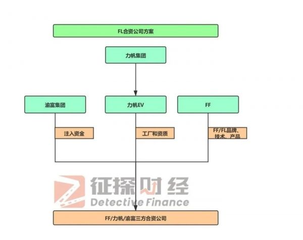 包括政府平台在内的三方合资方案里,这里涉及到一个界定,FF的第二品牌部分车型将注入到FL合资公司。FF、力帆、渝富集团三方资本注入,其中重庆政府平台公司渝富集团按合理年化利率计算整体资本金,合资公司用交的税或者退税作为政府基金资本金投入抵扣的来源,渝富集团逐年退出合资公司。