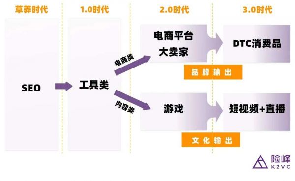 拉回到主线,从「工具类」出海的1.0时代发展到2.0时代,分化出了两条线:一条是「移动电商」走向成熟,另一条是「内容类」产品开始崛起。
