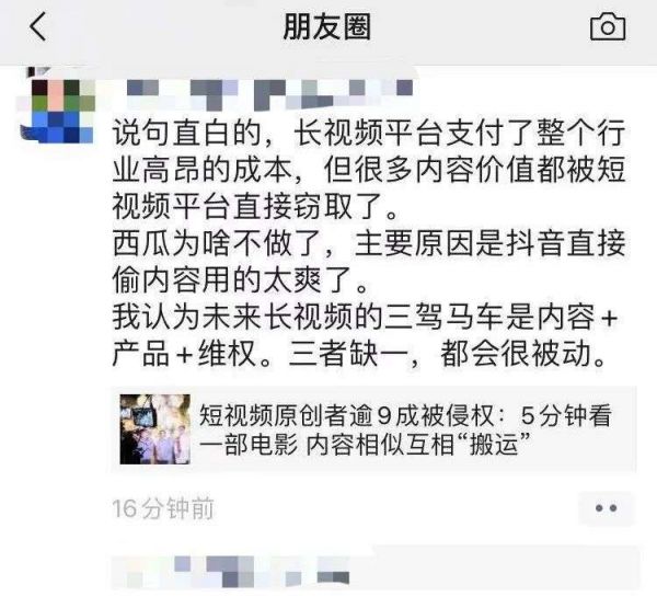 在长视频平台看来,长视频平台支付了整个行业高昂的内容成本,但很多内容价值都被短视频平台直接窃取了。