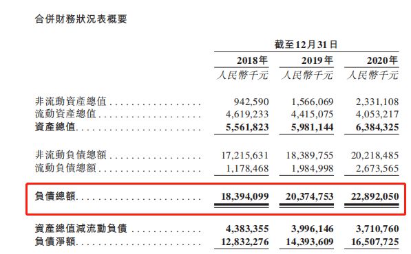一方面,微医这三年“大幅提升”的收入部分,三年总计才完成近26亿元;另一方面,微医在2019年和2020年负债部分的结余都超过200亿元。