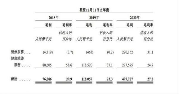招股书显示,2020年,微医总营收为18.32亿元人民币,其中2020年医疗服务收入7.06亿元,占比38.6%;健康维护服务收入11.25亿元,占比61.4%。