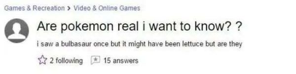 问:宝可梦是真的么?我刚刚看见了一只妙蛙种子但它也可能是一颗生菜。