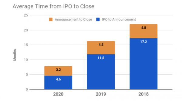 2019年的时候SAPC从成为上市公司,再到主营业务公司去宣布合并的时间,已经缩短到11个多月了。到20年,已经压缩到了4.6个月。这意味SPAC的活跃度已经非常高了。
