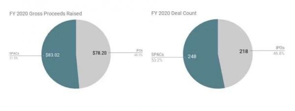 从上面两个饼状图可以看出,去年SPAC的家数,超过传统IPO的家数。