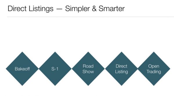 直接上市,可以在一定程度上有效缓解这类问题,这源于它更简单直接的上市流程。在满足不同标准的上市要求后,公司依然需要遵循基本的步骤准备招股书等一系列资料交给SEC审核,需要面向投资者进行线上线下形式的路演。