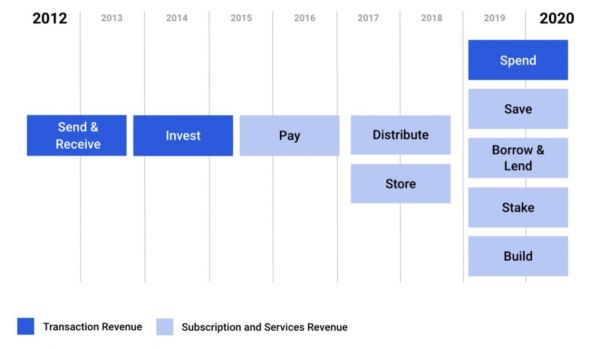 图 Coinbase成立以来商业模式的变迁,图片来自于Medium