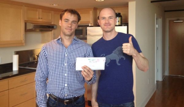 2012年Brian Armstrong(右)和Fred·Ehrsam(左)在旧金山公寓里创办Coinbase
