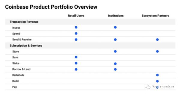 基于这个设想,Coinbase 圈定了 3 类客户:零售用户、机构投资者和生态合作伙伴。