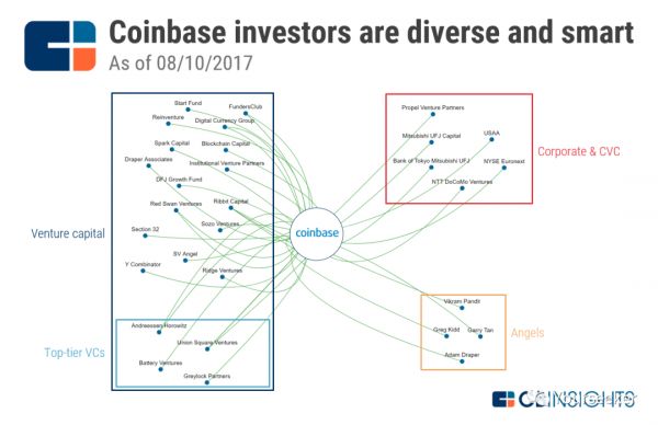 除去本身业务规模和行业号召力之外,Coinbase 的盟友也堪称梦幻。