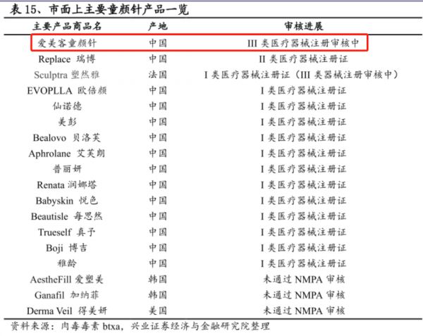 紧随其后的,爱美客的“童颜针”亦是获批在即。据悉,爱美客童颜针在去年年底就已经做完了现场核查,今年2月已经到了补充材料的阶段,材料完善后即可获批上市了,具体节奏则取决于监管层面。另外,它也是目前国内唯一有获批预期的三类医疗器械资质的童颜针。