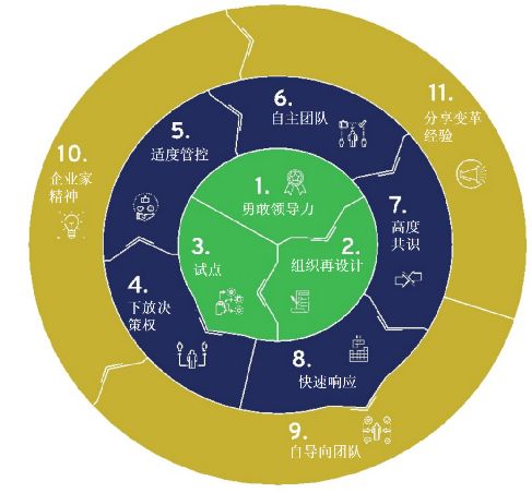 在“1 勇敢领导力”阶段,企业领导人首先必须要有思想上的统一,要建立明确的目标共识和毅然决然的组织改革决心,要明白企业需要什么,企业要往哪儿去;要认识到“人”在当今商业时代的前所未有的重要性;要深刻认识到,在VUCA时代,组织的敏捷性、灵活性、自驱力、创新力、协同力、重启力都至关重要。