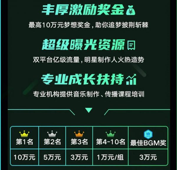 另一方面,相比抖、快激烈的竞争环境,全新的共振大赛竞争者不多,获奖几率高,对原创音乐人的快速成名、新人原创音乐人的起步无疑更为友好。