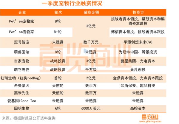 红瑞生物获得由金鼎资本领投、光点资本跟投的近2亿首轮融资;逗号智宠获得由平潭创想未来CVC的数千万元融资;萌兽医馆经完成由纬中国、沂景资本联合领投的B轮融资。