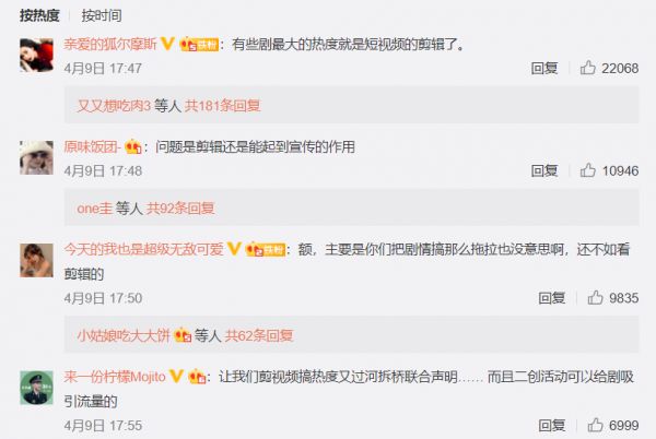 除了实际观剧损失,还有宣传方面的影响。台网关系的变动、超前点播的推行,令观众越来越难以保持统一的追剧节奏,也给作品的话题发酵与口碑维护造成了障碍。因超点走漏剧情,而导致观众弃剧的情况时有发生,短视频偷跑让这一情况进一步复杂化。