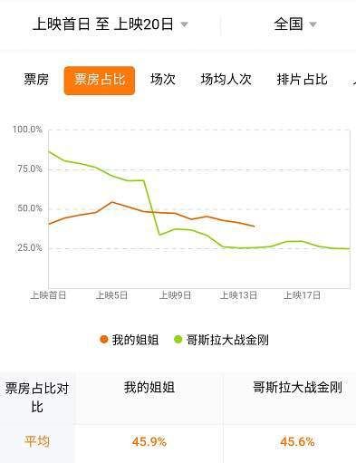 《我的姐姐》与《哥斯拉大战金刚》票房占比对比 图片来源:灯塔