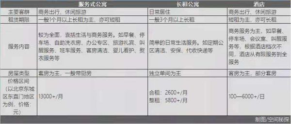 一方面是客群与服务对象的不同。国内长租公寓面对一群有租房需求的年轻人,提供的则是为生活住宿需求而设的单间,服务式公寓面对的则是商旅客,提供的更多是商住且完整独立的套房。