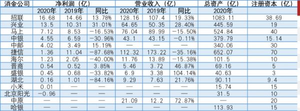 有6家消金净利润增长为负,连续两年披露净利润数据的10家消金公司中,2020年净利润总和比2019年少近10亿元,同比下降15.74%。