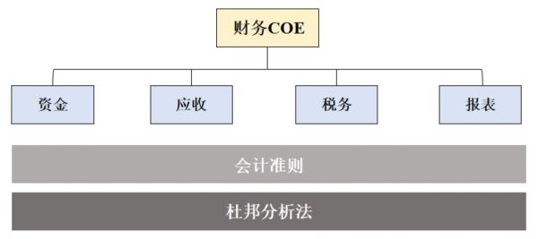 先看财务部。一般企业的财务COE有几个基本模块:“资金”负责费用成本等花钱事项;“应收”负责收入这类收钱的事项;“税务”负责税务筹划、申报等事项;“报表”负责财务分析等事项。