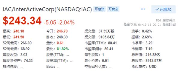 IAC目前市值217亿美元,Netflix市值2455亿,迪士尼市值3402亿