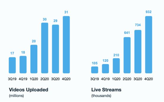 2020年,用户对上述三大功能的采纳和使用频率都大幅提升。2020年第四季度,用户上传至Vimeo的原创视频数量为3100万,相比2019年同期增长72%,通过Vimeo开展在线直播93.2万次,相比2019年第四季度的1.2万次,几乎翻了8倍。