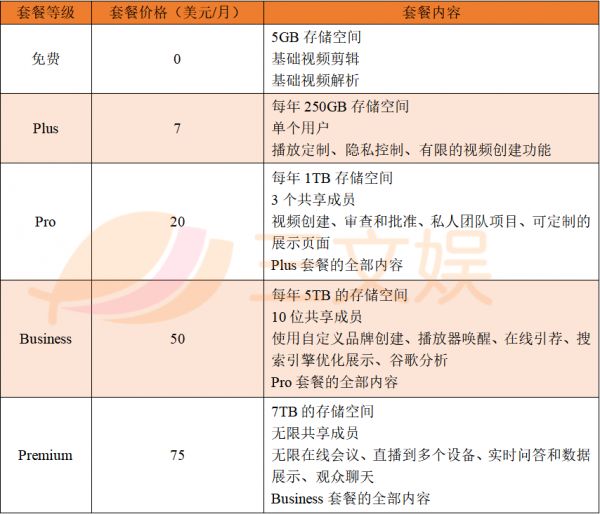 目前,Vimeo提供免费和4种不同的付费订阅方案,用户根据不同的套餐等级享受不同服务。