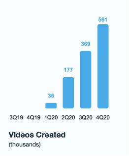 2019年5月28日,Vimeo以2亿美金的价格收购以色列视频创作公司Magisto,以扩大平台服务,提供更多的视频创建和编辑工具。2020年,通过该功能创建的视频数量达到114.3万支,并且呈现出持续上升的趋势。