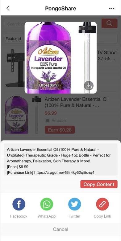 (PongoShare平台上供网红达人赚取佣金的产品)