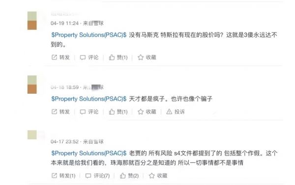 PSAC股票讨论区内,不乏股民分析FF的融资消息、招聘岗位,猜测其第一款车型FF91什么时候可以量产,推理上市进展,声称“老贾的希望是车,我们作为偏理性的投资者也只能看车”。也有人更加笃定,在贾跃亭处罚决定公布后,连发了十几条帖子表示支持,“天才都是疯子,也许也像个骗子”。