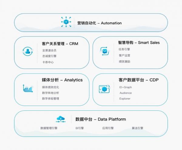 营销技术向来是一个变化迅速的领域,赛道中的玩家必须时刻把握市场动向,站在技术产品的前端。“底层的数据基础必须坚实,才能快速响应业务变化;中层的产品需要更加贴近应用场景,方便客户使用,助力业务提升;上层连接体系要和各类大生态需要紧密融合,为客户借力。”