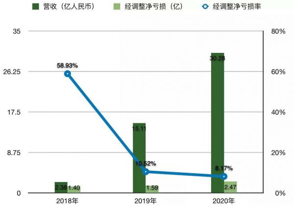 2019年营收达人民币15.11亿元,与2018年的人民币2.381亿元相比增长534.6%;2020年营收达到人民币30.279亿元,进一步同比增长100.4%。