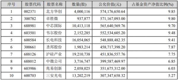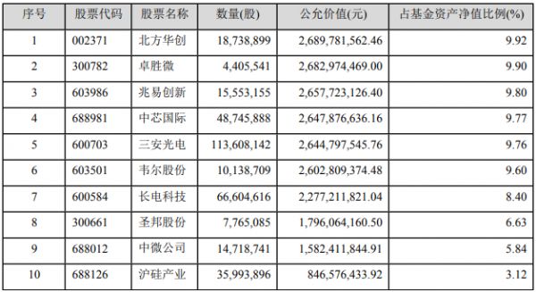 2021年一季度,诺安成长混合前十位的持仓组合与2020年Q4完全一致。甚至个股的持仓比例也没有发生改变,满仓北方华创、卓胜微、兆易创新、中芯国际、三安光电、韦尔股份六只股票的同时,长电科技(8.5%),圣邦股份和中微公司(6%-7%),沪硅产业(3%-4%)的持仓比例也与上一季度保持一致。