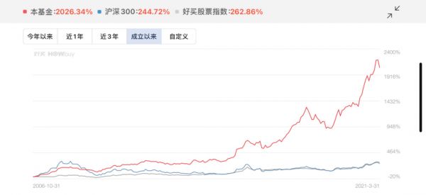 旗舰人民币产品景林稳健成立于2006年,期间市场历经跌宕——07年疯狂牛市、08年金融危机、13年14年万众创新、15年盛极而衰、17年蓝筹崛起、18年凄风苦雨、19年20年高歌猛进……但复利站在了景林这一边,15年下来创造了21倍的业绩,光是最早一笔6000万人民币的投资,到现在就已经滚雪球般变成了12个小目标。