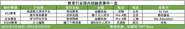 国内教育行业融资动态